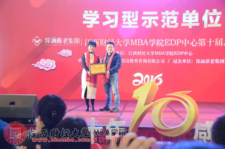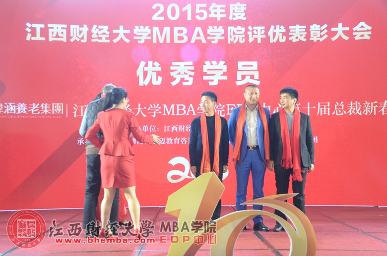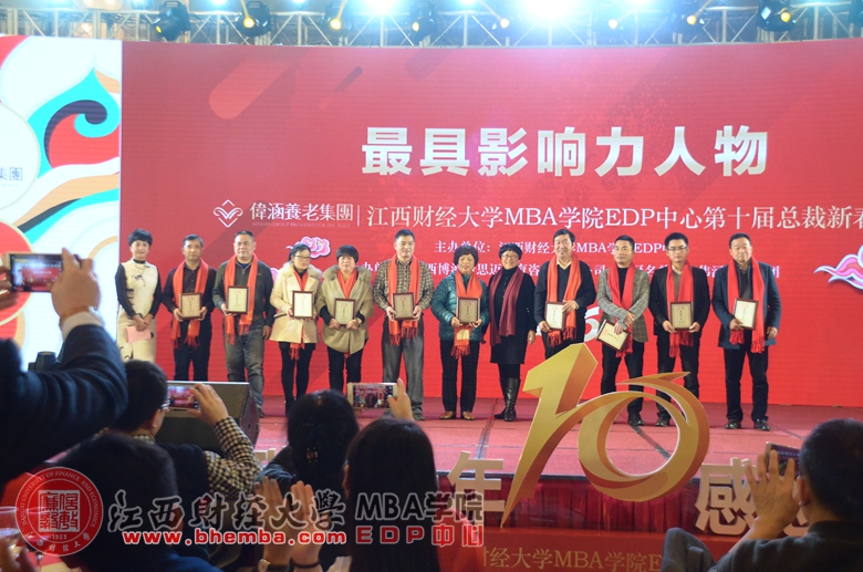 江西財(cái)經(jīng)大學(xué)MBA學(xué)院EDP中心發(fā)展的十年中,得到了許多學(xué)校及學(xué)院領(lǐng)導(dǎo)的支持,過(guò)去的十年有近萬(wàn)余名企業(yè)家在我們這里學(xué)習(xí),可以說(shuō)是所有學(xué)員成就了EDP中心的十年輝煌。當(dāng)天我們也從EDP中心近萬(wàn)余名學(xué)員中選出了十一位“最具影響力人物” ,這些人也許不是家財(cái)萬(wàn)貫、也許平時(shí)默默無(wú)聞,但他們卻是EDP中心十年發(fā)展中最珍貴的財(cái)富。在所有人的見(jiàn)證下學(xué)校為他們頒發(fā)了“最具影響力人物獎(jiǎng)”證書(shū)。