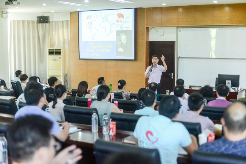 站式授課,課堂紀(jì)律要求嚴(yán)格,中間不需要續(xù)水,學(xué)員不能走動及接打電話,肢體豐富,崇尚毛澤東思想,板書不多。最后半天案例討論,分組發(fā)言,最后總結(jié)。