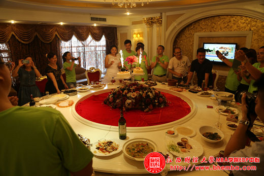 參觀完企業(yè),同學(xué)們在修水縣用午餐,同時為黃麗和龔海燕兩位美女同學(xué)過了生日,在耀眼的噴火蠟燭下,每個人的臉上洋溢著燦爛,此時的幸福猶如桌上的生日蛋糕,精美甜蜜。