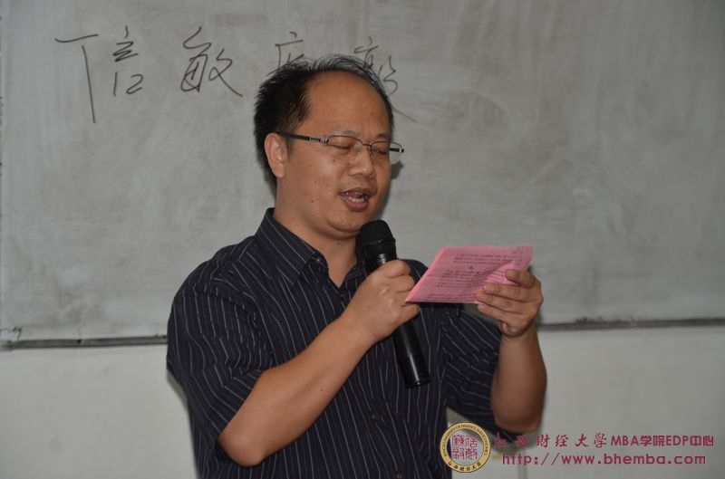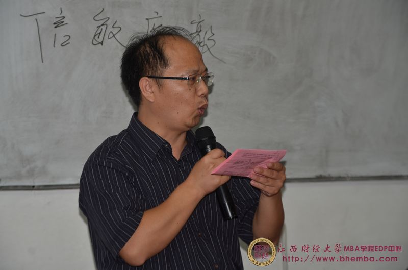 我是張家盛,今天,我站在這里,代表江西財(cái)經(jīng)大學(xué)EMBA總裁研修班21班(即贛州三班)的全體同學(xué)向我們的母校道別,向江財(cái)EDP中心的師長(zhǎng)道別,向一年多來(lái)相濡以沫的同學(xué)精英們道別,也向這段不能忘懷的歲月道別!