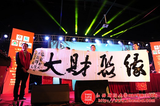 晚上七點(diǎn)三十分,中國(guó)夢(mèng) 財(cái)大緣——“中新房杯”江西財(cái)經(jīng)大學(xué)EMBA贛州第四屆總裁新春年會(huì)在贛州總裁六班葉祥、贛州總裁九班劉娟、贛州總裁十班賴崗輝、贛州人民廣播電臺(tái)林潔等四位主持的人開(kāi)場(chǎng)詞中拉開(kāi)了序幕。晚會(huì)中,一個(gè)個(gè)由各班學(xué)員自編自導(dǎo)自演的精彩節(jié)目將晚會(huì)打造成一片歡樂(lè)的海洋中,臺(tái)上演員傾情表演展現(xiàn)贛南總裁學(xué)子風(fēng)采,臺(tái)下觀眾賣力喝彩助力江財(cái)同窗好友情誼。與會(huì)人員紛紛利用一年一度的盛會(huì),共敘同學(xué)情誼,暢談生活百態(tài)。在持續(xù)了兩個(gè)小時(shí)后,晚會(huì)在歌曲《難忘今宵》中劃上了圓滿句號(hào)。晚會(huì)期間,還特意邀請(qǐng)中國(guó)書(shū)法家協(xié)會(huì)會(huì)員、贛州書(shū)法院院長(zhǎng)梁鐵民先生現(xiàn)場(chǎng)作畫(huà)進(jìn)行愛(ài)心義賣,在拍賣師、贛州總裁十班曾謙的主持下,梁院長(zhǎng)所作3幅字畫(huà)共拍得善款四萬(wàn)余元,將轉(zhuǎn)入贛州市江西財(cái)經(jīng)大學(xué)EMBA同學(xué)聯(lián)誼會(huì)慈善基金并用于扶貧助困。