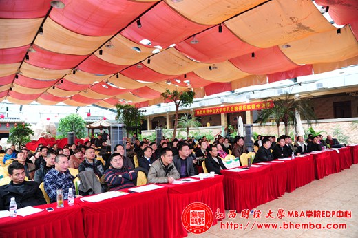 萬(wàn)馬爭(zhēng)飛躍,百花粘笑顏。2014年1月13日,贛州市江西財(cái)經(jīng)大學(xué)EMBA同學(xué)聯(lián)誼會(huì)第三次會(huì)員大會(huì)暨“中新房杯”第四屆總裁新春年會(huì)在地處贛州市章貢區(qū)水西鎮(zhèn)赤珠、湖邊鎮(zhèn)石人前之間的寶葫蘆生態(tài)農(nóng)莊隆重舉行。贛州市人大常委會(huì)副主任、市工商聯(lián)主席唐玉英,市工商聯(lián)副主席夏命通,市工商聯(lián)副主席、市女企業(yè)家商會(huì)會(huì)長(zhǎng)林欽,中新房江西建設(shè)發(fā)展有限公司總經(jīng)理王藝樺;我校MBA學(xué)院EDP中心主任齊玲博,EDP中心副主任漆飛;贛州市江西財(cái)經(jīng)大學(xué)EMBA同學(xué)聯(lián)誼會(huì)會(huì)長(zhǎng)、江西龍峰建設(shè)集團(tuán)董事長(zhǎng)林阿龍,贛州市江西財(cái)經(jīng)大學(xué)EMBA同學(xué)聯(lián)誼會(huì)常務(wù)副會(huì)長(zhǎng)兼法人代表、江西南芳律師事務(wù)所合伙人會(huì)議主席范衛(wèi)權(quán),贛州市江西財(cái)經(jīng)大學(xué)EMBA同學(xué)聯(lián)誼會(huì)常務(wù)副會(huì)長(zhǎng)兼秘書(shū)長(zhǎng)、江西陽(yáng)發(fā)廣播影視文化傳媒有限公司董事長(zhǎng)歐陽(yáng)金發(fā)及來(lái)自贛州總裁一班至總裁十班的常務(wù)副會(huì)長(zhǎng)出席了活動(dòng)。贛州市江西財(cái)經(jīng)大學(xué)EMBA同學(xué)聯(lián)誼會(huì)會(huì)員、理事、常務(wù)理事、副會(huì)長(zhǎng)以及贛州市工商聯(lián)各直屬商會(huì)代表、贊助商代表共計(jì)四百余人參加了年會(huì)。