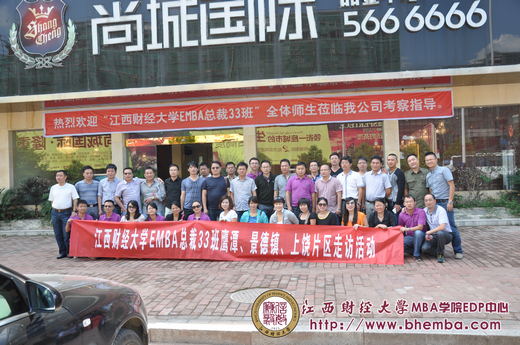 第二天我們前往弋陽,參觀了舒光虎同學(xué)在當(dāng)?shù)氐捻?xiàng)目——匯金廣場(chǎng)。匯金廣場(chǎng)秉承“城市在哪里,匯金就到哪里”的品牌理念,旨在加速發(fā)展當(dāng)?shù)氐慕?jīng)濟(jì),同時(shí)也引起了當(dāng)?shù)卣腿罕姷母叨汝P(guān)注。舒光虎同學(xué)熱情的為大家講解他的項(xiàng)目,交流自己的管理經(jīng)驗(yàn),并和其他同學(xué)做了深入的交流,互相學(xué)習(xí)和借鑒,如何把握時(shí)機(jī),讓自己的企業(yè)發(fā)展的更好更快。之后我們又前往橫峰,參觀了王俊華同學(xué)的項(xiàng)目——尚城國(guó)際,尚城國(guó)際主營(yíng)房地產(chǎn),在當(dāng)?shù)厥歉邫n的住宅,也引起了熱烈的反響。接著我們又馬不停蹄的趕往鷹潭,參觀了齊愛平同學(xué)的項(xiàng)目——家樂居家裝城,里面所有的家裝設(shè)施一應(yīng)俱全,正響應(yīng)了“走進(jìn)家樂居,帶回一個(gè)家”的理念。