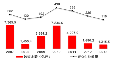 2007-2014中國(guó)企業(yè)全球IPO統(tǒng)計(jì)(2014年中國(guó)新增上市公司197家(115/82))
