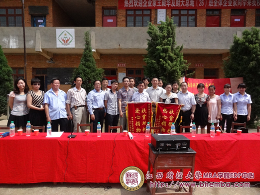 接下來是設備財物交接儀式和學校為企業(yè)家學員們頒發(fā)致謝錦旗。財大總裁26班對天源小學的慈善捐助活動在溫馨的大合影中結束。