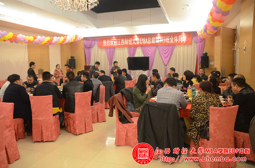 12月15日晚,由贛州總裁九班班委精心組織策劃、全班同學(xué)參與布置的我校EMBA總裁三十八班暨贛州九班畢業(yè)晚會(huì)在南昌七星商務(wù)酒店3樓宴會(huì)廳隆重舉行。MBA學(xué)院EDP中心主任齊玲博女士、EDP中心副主任漆飛女士出席了畢業(yè)晚宴。MBA學(xué)院EDP中心工作人員、贛州總裁九班畢業(yè)學(xué)員共計(jì)七十余人參加了晚宴。