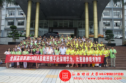 2014年5月22—23號,來自江西財大、重慶大學、云南大學、西安交大、湖南大學五所高校一百四十余名EMBA總裁班學員們組成的深圳華為、比亞迪參觀考察團進行了為期兩天的游學之旅。