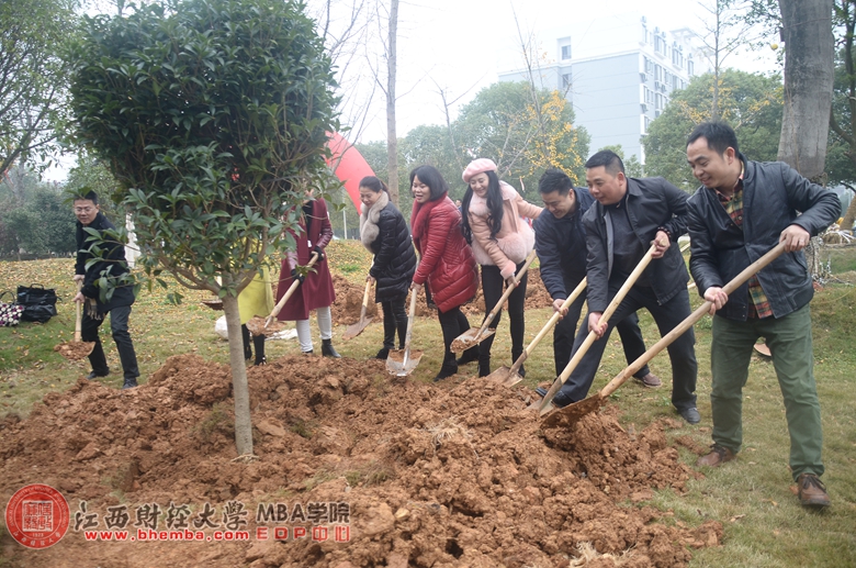 “十年樹木,百年樹人”種下一棵樹,留下一生情誼。繼去年首屆江西財(cái)經(jīng)大學(xué)MBA學(xué)院“總裁校友林”捐贈活動成功舉辦并得到了學(xué)員們的廣泛與關(guān)注之后,今年又有更多的班級加入到我們的“總裁校友林”捐贈活動當(dāng)中,向母校表達(dá)他們的深情與感恩。12月11日上午,總裁班3班、6班、23班、37班、39班、50班、51、班、53班及2014級投融資與資本運(yùn)營班的同學(xué)門帶上他們精心挑選的樹種抵達(dá)蛟橋園南區(qū)進(jìn)行栽植。江西財(cái)經(jīng)大學(xué)副校長、校友總會常務(wù)副會長闕善棟教授,校黨委宣傳部副部長,新聞中心主任劉靈,江西財(cái)經(jīng)大學(xué)后勤保障處處長彭元教授,MBA學(xué)院副院長吳良平教授,江西財(cái)經(jīng)大學(xué)MBA學(xué)院EDP中心總顧問趙海波先生、EDP中心副主任漆飛女士,江西財(cái)經(jīng)大學(xué)節(jié)能中心副主任萬莉女士等領(lǐng)導(dǎo)一起出席參加了本次“總裁校友林”捐贈活動。