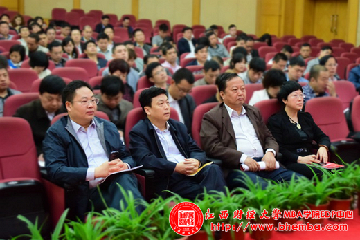 3月30日,由江西財經(jīng)大學MBA學院主辦,江西財經(jīng)大學MBA學院EDP中心協(xié)辦的江西財經(jīng)大學MBA學院2014年新春年會在江西財經(jīng)大學蛟橋園校區(qū)學術(shù)報告廳隆重舉行。中宣部政研所副所長戴木才應(yīng)邀參加,并作了題為“全面深化改革與我國政治經(jīng)濟發(fā)展走向”的學術(shù)報告。校長王喬、校黨委副書記胡建華、黨辦校辦主任袁雄、黨委宣傳部部長王金海、MBA學院院長周玫、職業(yè)技術(shù)學院院長劉彪文、馬克思學院、人文學院教師代表以及MBA學院全體教職員工和各項目全體學員近400人參加了本次年會。
