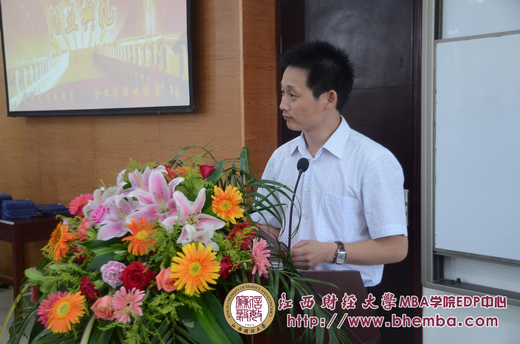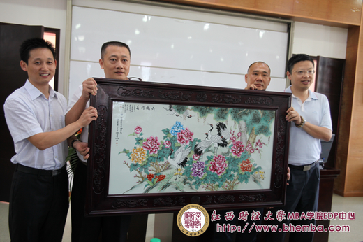 而隨后來自江西省威博實業(yè)發(fā)展有限公司董事長王謨顯同學(xué)發(fā)表了感言,也代表全班同學(xué),做了言簡意賅的畢業(yè)發(fā)言,言語雖然不多,但是發(fā)自肺腑,王謨顯向?qū)W院和EDP中心一年來對同學(xué)們的關(guān)懷指導(dǎo)表示誠摯的感謝,也表達了對母校和同學(xué)們彼此之間衷心的祝愿、祝福。隨后,熊海生班長率班上幾位男同學(xué),捧出29班給中心的畢業(yè)贈品:瓷壁畫。一份禮化作濃濃的情誼,總裁29班的全體學(xué)員用無聲的言語表達了對母校的眷戀之情與感恩。