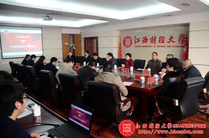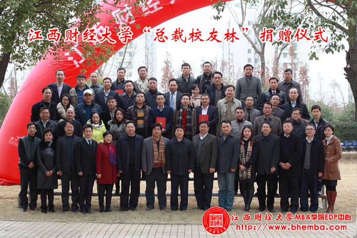 1月7日上午,江西財經(jīng)大學(xué)“總裁校友林”捐贈儀式隆重舉行。校長王喬、副校長王小平,省工商局副局長、著名校友劉建華等領(lǐng)導(dǎo)出席并為“總裁校友林”揭牌,黨辦校辦、宣傳部、MBA學(xué)院、校友辦、后勤保障處等部門負(fù)責(zé)人及來自總裁班14、19、22、36、41、43、45、46、47班的學(xué)員代表一起參加了活動。捐贈儀式由后勤保障處處長彭元主持。