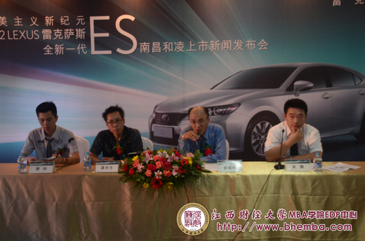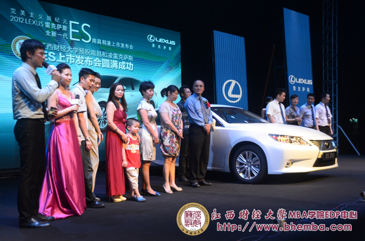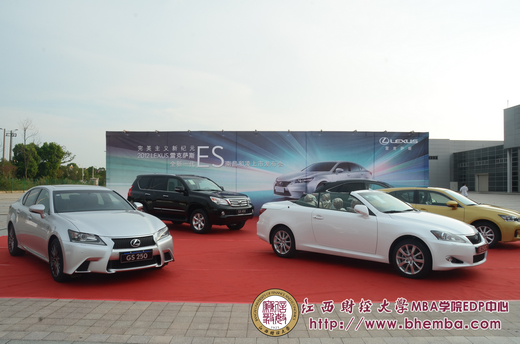 2012年8月18日下午,一輛黑色的海馬轎車(chē)奔馳在南昌的道路上,目的地直指——紅谷灘會(huì)展中心,這也是南昌和凌雷克薩斯新車(chē)發(fā)布會(huì)的展場(chǎng)。江西財(cái)經(jīng)大學(xué)MBA學(xué)院EDP中心受邀參加此次活動(dòng),由EDP中心漆飛主任以及李彥杰老師帶隊(duì),并且組織總裁班的學(xué)員積極參與。下午五點(diǎn)時(shí)分,我們到達(dá)了會(huì)場(chǎng)。在迎賓人員的帶領(lǐng)下,走進(jìn)會(huì)場(chǎng)。隨后,學(xué)員也陸續(xù)到達(dá)了會(huì)展中心,展位上早已擺放這此次發(fā)布會(huì)的主角,ES系列新品:IS 250 C、GS 400等。學(xué)員或獨(dú)自欣賞或三三兩兩津津樂(lè)道的討論著。