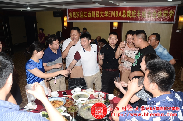 這次聚會為學(xué)員與學(xué)員,學(xué)員與學(xué)校之間構(gòu)建了一個更加良好的橫向交流平臺,方便學(xué)員之間互幫互助,攜手并進(jìn)。各班學(xué)員與老師共同交流工作經(jīng)驗,分享學(xué)習(xí)心得,生活體會,席間觥籌交錯,其樂融融,歡聲笑語不絕于耳。在聚會中間我們的總裁班學(xué)員袁曼麗即興演唱的《給我一個吻》更是贏得大家的陣陣掌聲,把氣氛推向了高潮。席間,豐城的學(xué)員們建議成立豐城EMBA總裁班同學(xué)會,以加強學(xué)員之間的聯(lián)系,共同為豐城的建設(shè)凝心聚力,與此同時學(xué)員們也表達(dá)了對江西財經(jīng)大學(xué)MBA學(xué)院EDP中心的美好祝愿。晚餐過后,大家一起合影留念,依依惜別,約定下次的再相聚。