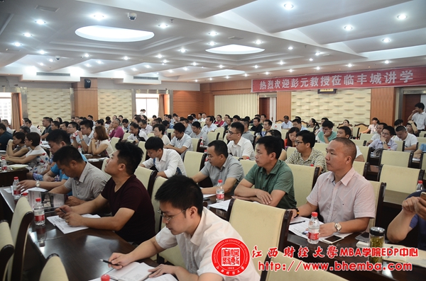 2015年6月24日,由江西財經(jīng)大學(xué)和豐城市工商聯(lián)聯(lián)合主辦,江西財經(jīng)大學(xué)MBA學(xué)院、江西財經(jīng)大學(xué)MBA學(xué)院EDP中心、江西豐城高新技術(shù)開發(fā)園區(qū)管理委員會共同承辦的江西財經(jīng)大學(xué)第六十八屆高管論壇在豐城市政務(wù)服務(wù)中心如期舉行。本次論壇以領(lǐng)導(dǎo)科學(xué)與管理藝術(shù)為主題,我們也非常榮幸的請到原江西財經(jīng)大學(xué)MBA學(xué)院副院長、經(jīng)濟(jì)學(xué)博士、西安交通大學(xué)EMBA總裁班、重慶大學(xué)EMBA總裁班特聘教授彭元主講。豐城市工商聯(lián)主席甘宇紅、豐城市委統(tǒng)戰(zhàn)部副部長、工商聯(lián)黨組書記丁愛平、江西財經(jīng)大學(xué)MBA學(xué)院EDP中心主任漆飛及江西財經(jīng)大學(xué)EMBA總裁班的學(xué)員們共同出席了本次論壇。