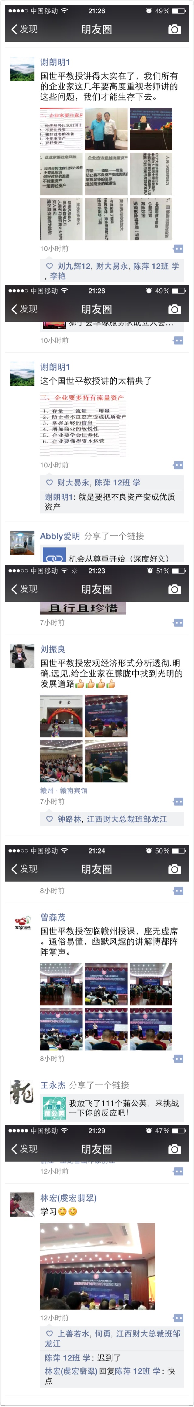 ??學(xué)員們紛紛表示,此次國(guó)世平教授的論壇讓他們受益匪淺,更加明晰了當(dāng)前的宏觀經(jīng)濟(jì)形勢(shì)及未來(lái)的投資方向,今后有機(jī)會(huì)將會(huì)再次前來(lái)聆聽(tīng)國(guó)教授的真知灼見(jiàn)。江西財(cái)經(jīng)大學(xué)MBA學(xué)院EDP中心已經(jīng)有開(kāi)設(shè)了52期總裁研修班,現(xiàn)目前MBA學(xué)院總裁53班也即將在7月份開(kāi)課,這將為更多的企業(yè)管理者提供一個(gè)學(xué)習(xí)交流的機(jī)會(huì),也期待更多的優(yōu)秀企業(yè)家們加入我們這個(gè)大家庭!