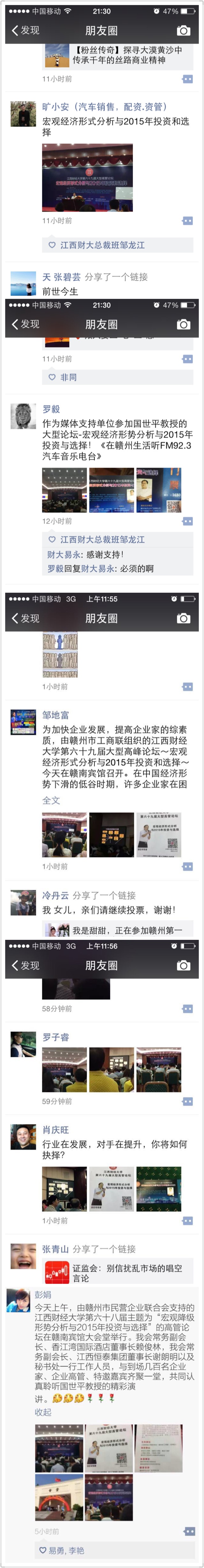 ??據(jù)悉,此次論壇還得到了章貢區(qū)工商聯(lián)、南康區(qū)工商聯(lián)、贛縣工商聯(lián)、上猶縣工商聯(lián)、于都縣工商聯(lián)、贛州市江西財(cái)經(jīng)大學(xué)EMBA同學(xué)聯(lián)誼會(huì)、贛州市民營(yíng)企業(yè)聯(lián)合會(huì)、贛州經(jīng)濟(jì)技術(shù)開(kāi)發(fā)區(qū)企業(yè)協(xié)會(huì)及贛州市時(shí)代公交廣告有限公司、江西國(guó)維實(shí)業(yè)有限公司、贛州好朋友車(chē)電臺(tái)(FM92.3)等學(xué)員企業(yè)的大力支持,在此表示衷心感謝。(圖、文/江西財(cái)經(jīng)大學(xué)EMBA贛州教學(xué)點(diǎn) 鄒龍江)