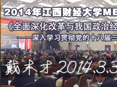 論壇題目:2014年江西財經大學MBA學院年會主題:《全面深化改革與我國政治經濟發(fā)展走向》——深入學習貫徹黨的十八屆三中全會決定主講人:戴木才,現任中宣部政研所研究員、副所長。曾任中央黨校教授、博士生