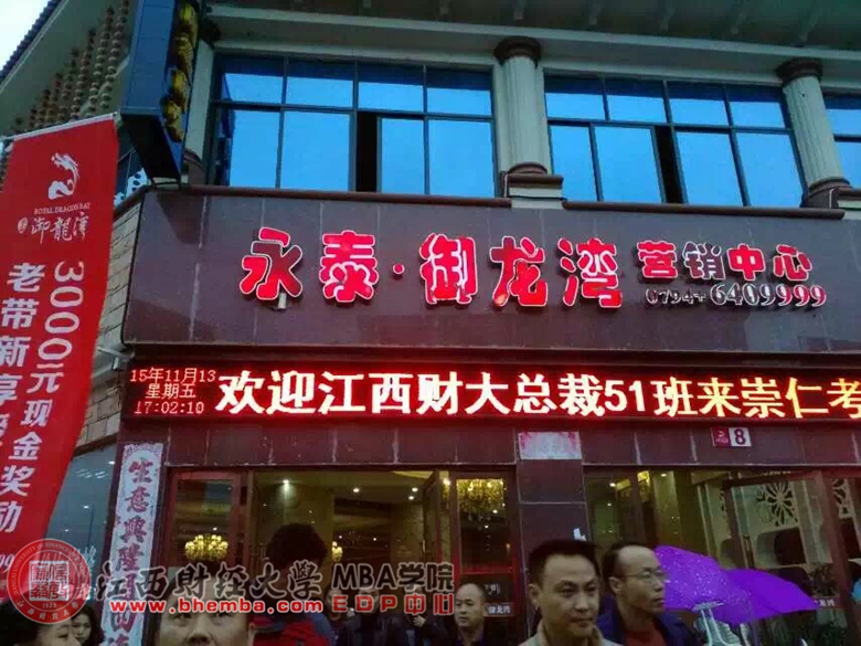 11月13日,我們總裁51班的同學(xué)們共同乘坐大巴車從學(xué)校出發(fā)前往走訪的第一站—撫州崇仁,走進(jìn)我們51班黃永平同學(xué)的企業(yè)—永泰·御龍灣。大家在工作人員的帶領(lǐng)下參觀了御龍灣的樓盤模型,其樓盤充分利用自然、人文與人工要素,生態(tài)環(huán)境優(yōu)良、風(fēng)景宜人,精致的設(shè)計(jì),高端的布局令人嘆服。