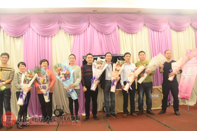 MBA學院EDP中心總顧問趙海波、中心主任漆飛也先后講話,對贛州總裁十二班學員的畢業(yè)表示熱烈的祝賀,對贛州總裁十二班學員一年的學習態(tài)度表示充分的肯定。講話中,兩位領導希望同學們能夠結(jié)合當前經(jīng)濟形勢,做好企業(yè)發(fā)展轉(zhuǎn)型工作,及時應對經(jīng)濟寒冬;并希望大家畢業(yè)后?;貙W??纯矗c母校一同分享企業(yè)酸甜苦辣。講話最后,兩位領導紛紛祝愿總裁班學員們事業(yè)常新,身體健康,闔家幸福,人生如意!