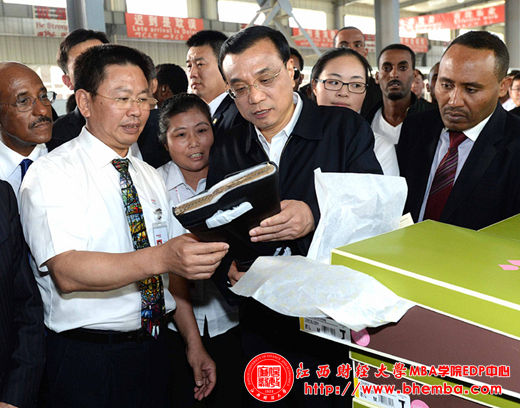 據(jù)悉,此次李克強總理參觀華堅鞋城,是繼2008年7月19日,時任中共中央政治局常委、前國務(wù)院總理溫家寶來到華堅集團華寶鞋業(yè)(東莞)調(diào)研考察;2012年1月28日,時任中共中央政治局常委、全國政協(xié)主席賈慶林訪問埃塞俄比亞期間專程前往華堅國際鞋城參觀;2013年5月24日,在埃塞俄比亞首都亞的斯亞貝巴出席非盟成立50周年慶典活動的習(xí)近平主席特別代表、中共中央政治局委員、國務(wù)院副總理汪洋視察了華堅國際鞋城(埃塞俄比亞)責(zé)任有限公司后黨和國家領(lǐng)導(dǎo)人第四次參觀視察華堅國際鞋城。(圖文整理/江西財大MBA學(xué)院EDP中心宣傳部鄒龍江)