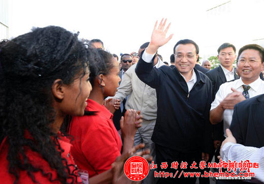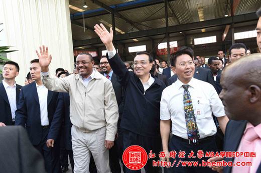 埃塞當(dāng)?shù)貢r間5月5日下午,中共中央政治局常委、國務(wù)院總理李克強在埃塞總理海爾瑪利亞姆陪同下來到東方工業(yè)園中國政府在埃塞唯一的國際經(jīng)貿(mào)合作區(qū))參觀我校EMBA贛州總裁一班班長、贛州市江西財經(jīng)大學(xué)EMBA同學(xué)聯(lián)誼會名譽會長、世界鞋業(yè)總部基地董事長、華堅國際集團董事長張華榮同學(xué)華堅國際鞋城(埃塞俄比亞)有限公司。埃塞華堅成立于2011年11月,是世界最大女鞋生產(chǎn)集團之一的華堅集團在埃塞俄比亞投資設(shè)立的全資子公司,廠房面積超過20000平方米;到目前為止投資總額現(xiàn)已超過1400萬美元。目前已建成6條現(xiàn)代化制鞋生產(chǎn)線和鞋材廠,員工3500余人,其中埃塞員工超過3000人。主要生產(chǎn)GUESS、UNISA、MARC FISHER、NATURAL SOUL、NATURALIZER、TOMMY HILFIGER、GBY GUESS 等世界知名品牌。華堅鞋城是埃塞俄比亞最大的制鞋企業(yè),其生產(chǎn)的女鞋占埃塞俄比亞鞋業(yè)出口份額的50%以上,帶動了當(dāng)?shù)仄じ锛庸?、運輸、物流、農(nóng)場等多領(lǐng)域發(fā)展,也成為李克強總理此次參觀的重點。